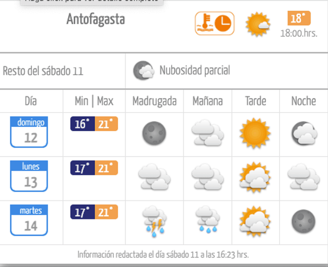 La Dirección Meteorológica de Chile (DMC) emitió un aviso por precipitaciones normales a moderadas en un corto período de tiempo para sectores de las regiones de Antofagasta y Tarapacá, fenómeno que se presentará entre la madrugada y la mañana del martes 14 de abril.