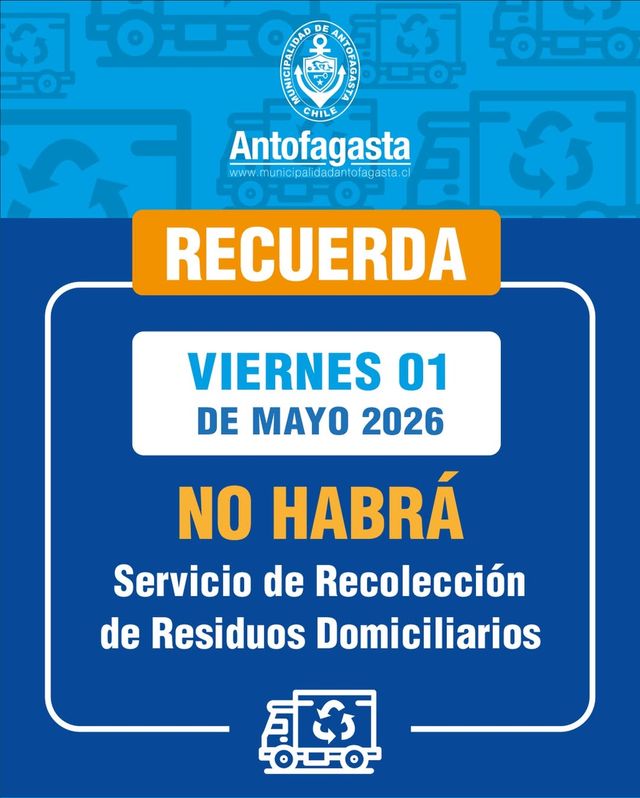 Así lo confirmó la Municipalidad de Antofagasta, donde ratificaron que este viernes no habrá recolección de residuos, por lo que el llamado es no sacar la basura durante la jornada para mantener el aseo de las calles de la comuna.