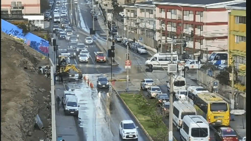 Además, se ha acumulado agua en la calzada, lo que está afectando el tránsito en la intersección.