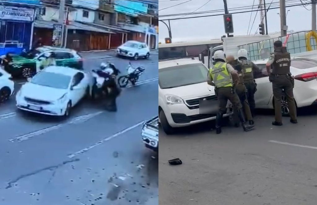 Luego huye pretendiendo colisionar en reiteradas oportunidades a Carabineros. Cuando el individuo llega a la intersección de las calles Juan Bolívar y Héroes de la Concepción, el conductor colisiona a dos vehículos, quedando atrapado entre un automóvil y un camión.