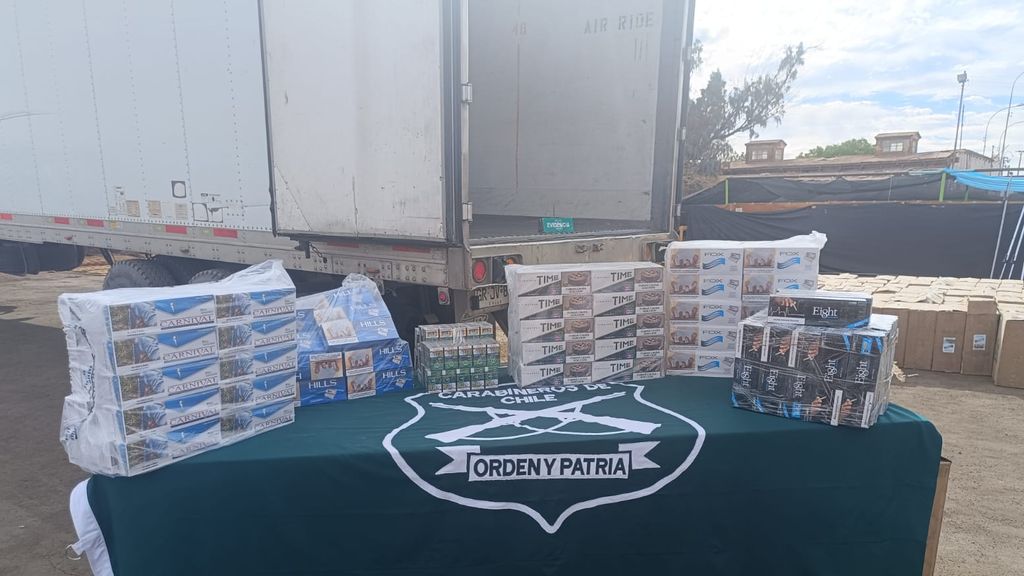 "Luego de revisar el camión se observó a primera vista una carga de cajas de tomates, pero al revisar con más detalle, Carabineros confirmó un cargamento de pacas de cigarrillos ingresando de manera ilegal al país", detalló el capitán.